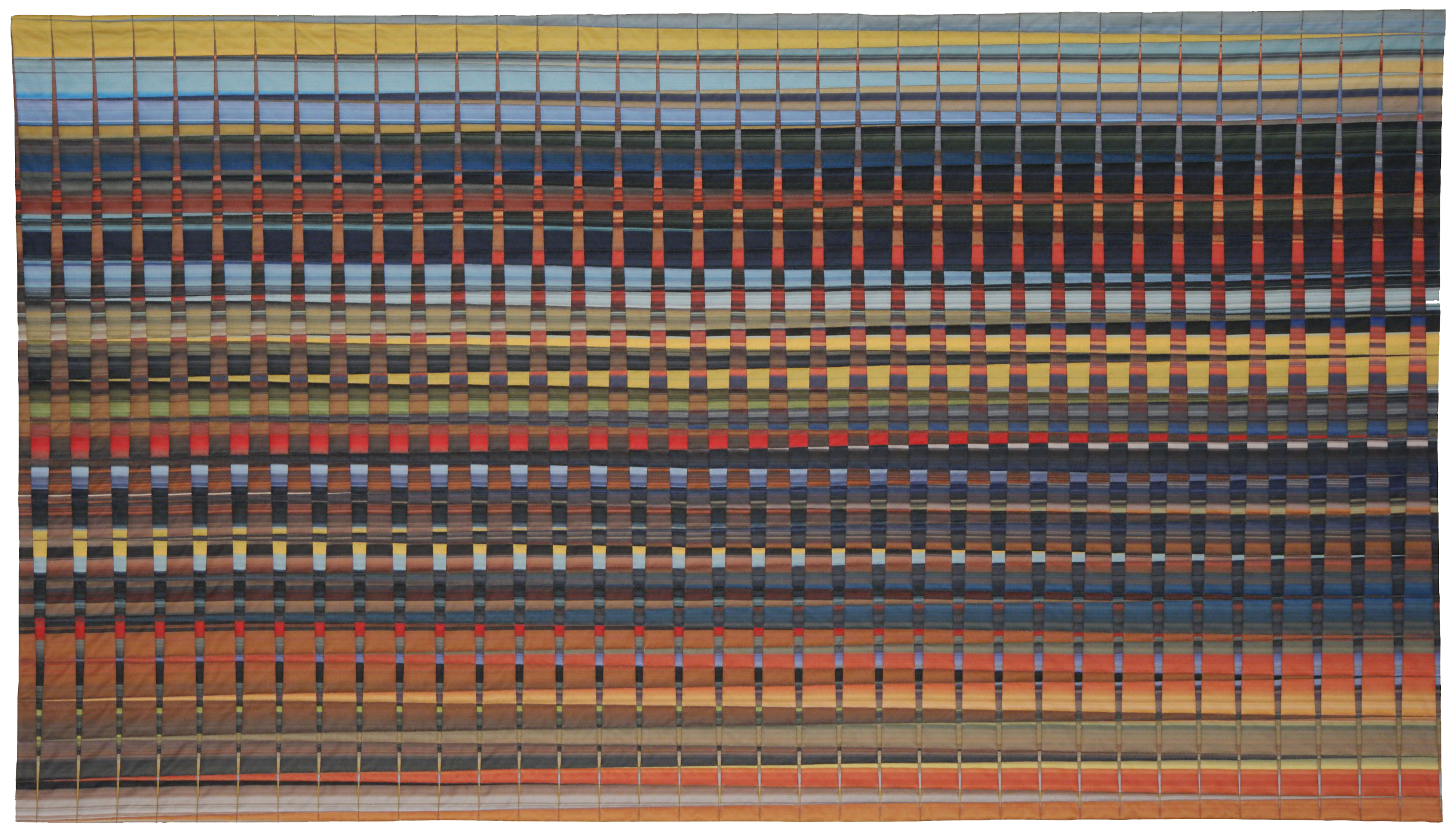 This quilt is part of a series of rectangular quilts that feature colors used by famous artists. Photoshop was used to create the design using four rectangles of color stripes. I obtained the color stripes for this quilt by scanning images of paintings by Elaine de Kooning.